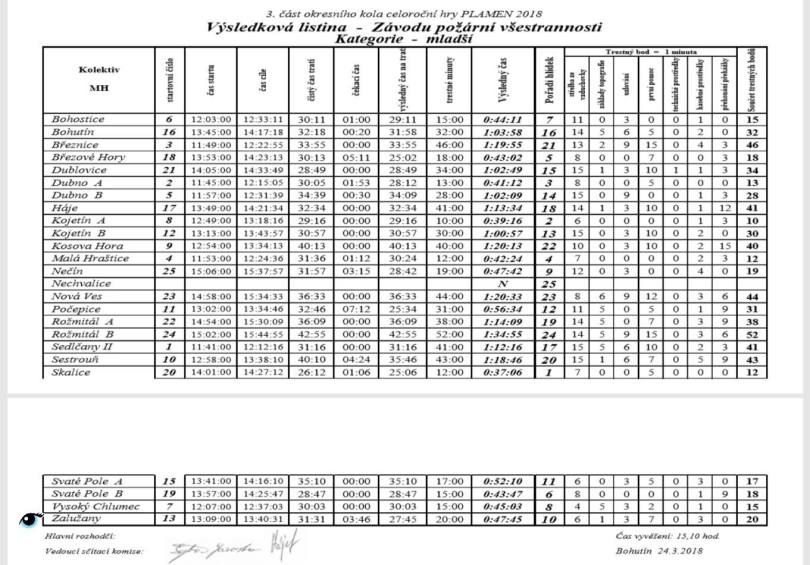 Výsledky ZPV 2018 Bohutín